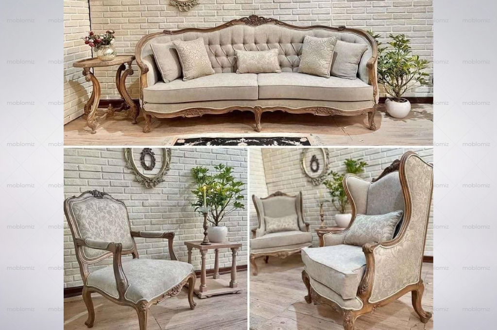 مبل کلاسیک ۹ نفره راشل ترکیبی چشمنواز از ظرافت هنری، راحتی و اصالت در طراحی دکوراسیون کلاسیک است. این ست با منبتکاریهای ظریف و دقیق روی بدنه چوبی، حس لوکس و اشرافی را به فضای پذیرایی منتقل میکند و انتخابی مناسب برای خانههایی با چیدمان رسمی و کلاسیک به شمار میرود.