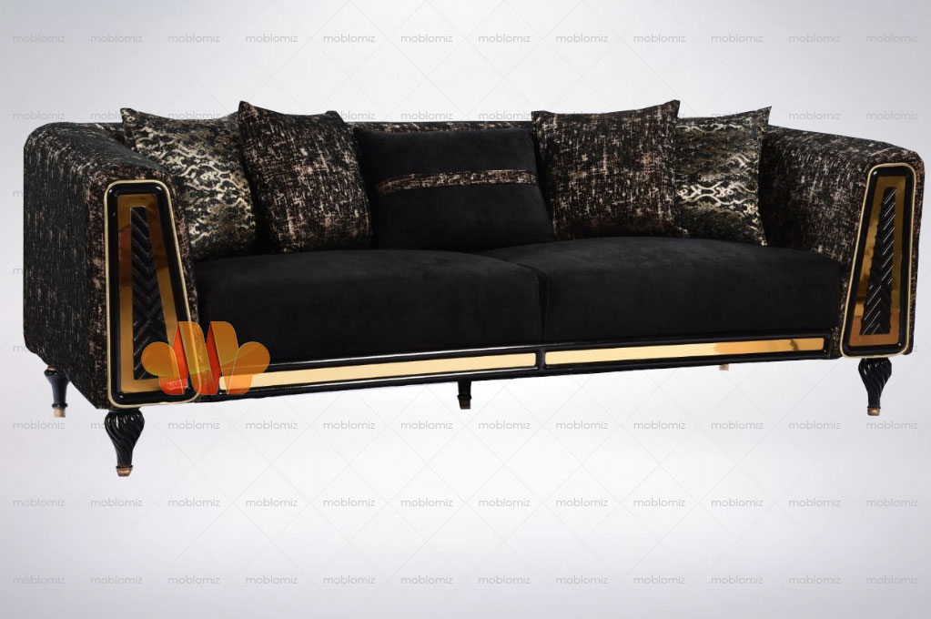 مبل راحتی کلاسیک رئال با ظاهری زیبا و شیک با پایه هایی از جنس چوب راش و نمایی زیبا با نوار طلایی رنگ، این مبل راحتی به صورت هشت نفره با ترکیب 1+1+3+3 تقدیم می شود البته امکان خرید نیم ست نیز مهیا است قابلیت تغییر پارچه و رنگ نیز وجود دارد
